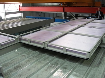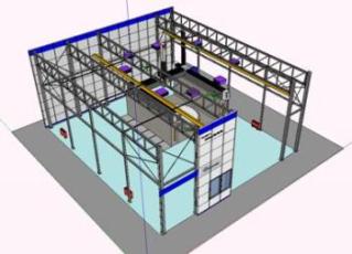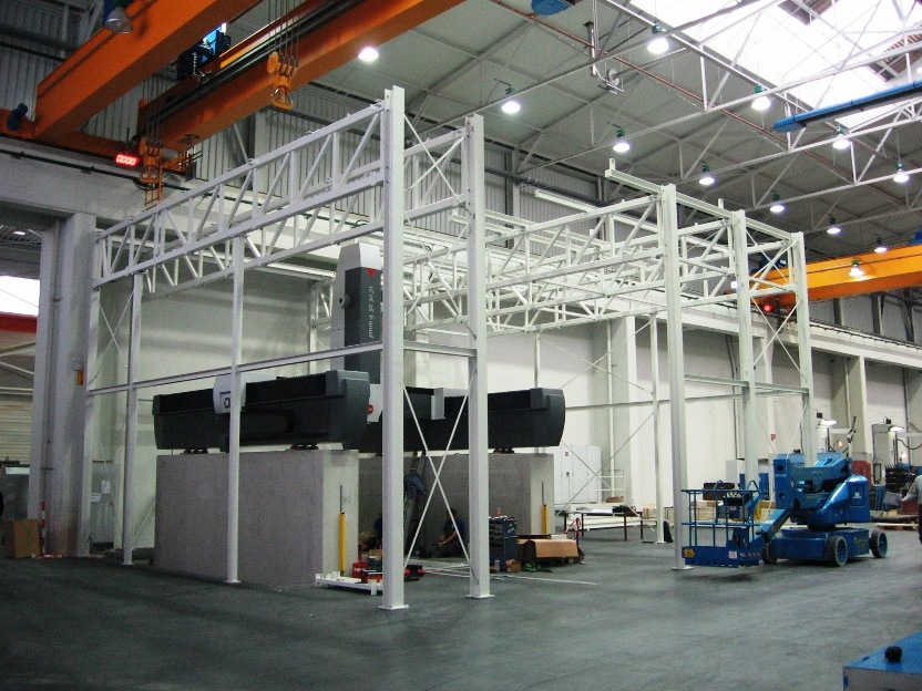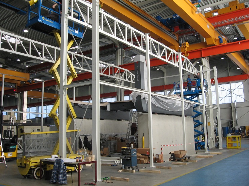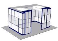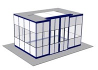 The stability of the room is provided by a framework of hot rolled, epoxy-coated steel shapes (uprights, main and side support beams in bolted design). Cross-bracing in upper regions provide additional rigidity.