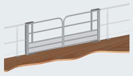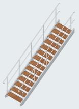 Every staircase consists of 2 C-shape steel sides with hand and knee rail. Stair step are alternately either plywood or galvanized steel grating.